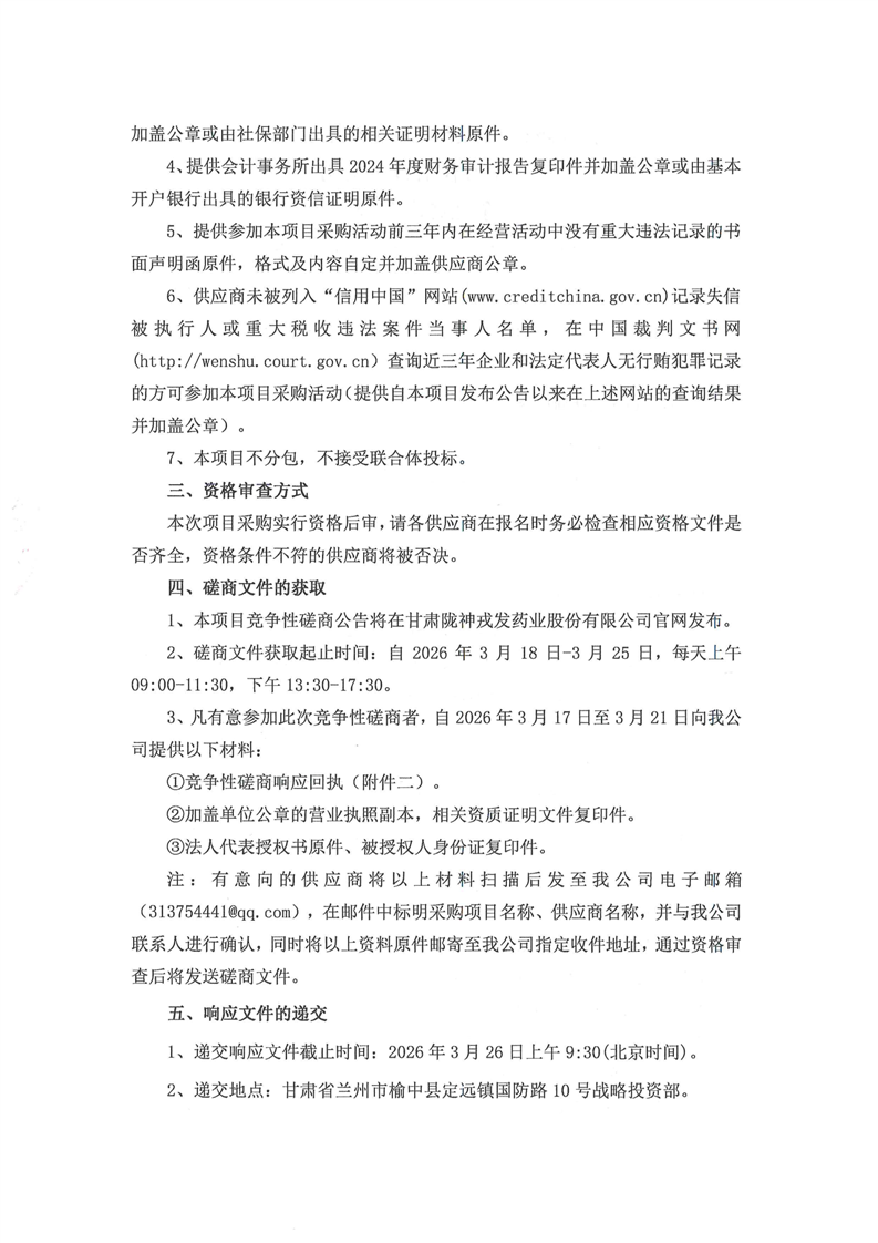 甘肃必一运动药业股份有限公司技术中心仪器设备采购竞争性磋商公告
