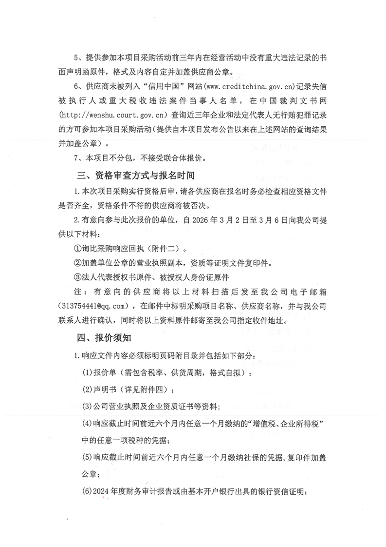 甘肃必一运动药业股份有限公司仪器设备询比采购公告