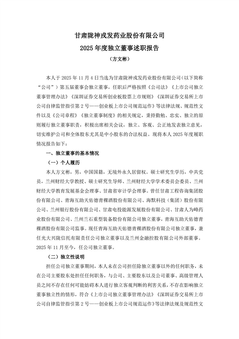 2025年度独立董事述职报告(方文彬)