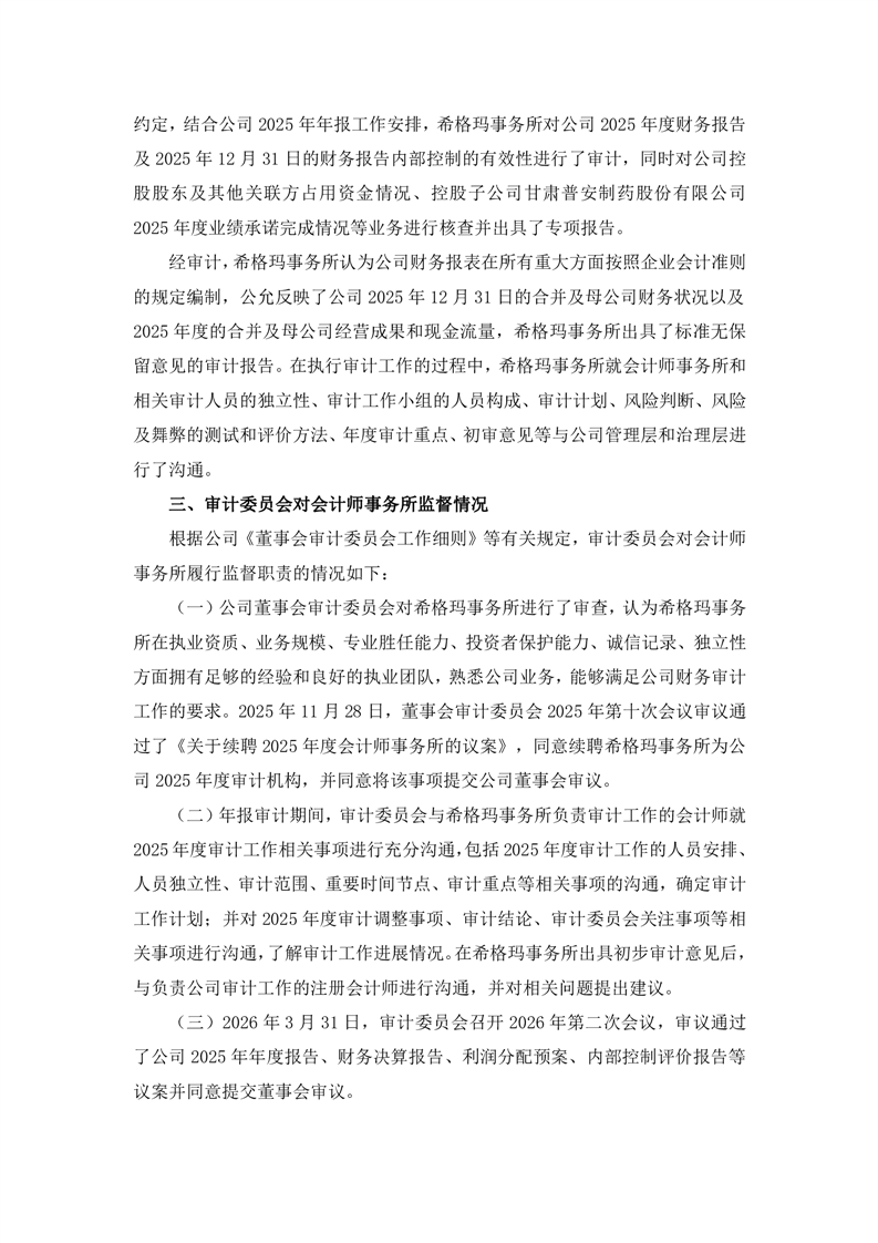 董事会审计委员会对会计师事务所2025年度履行监督职责情况的报告