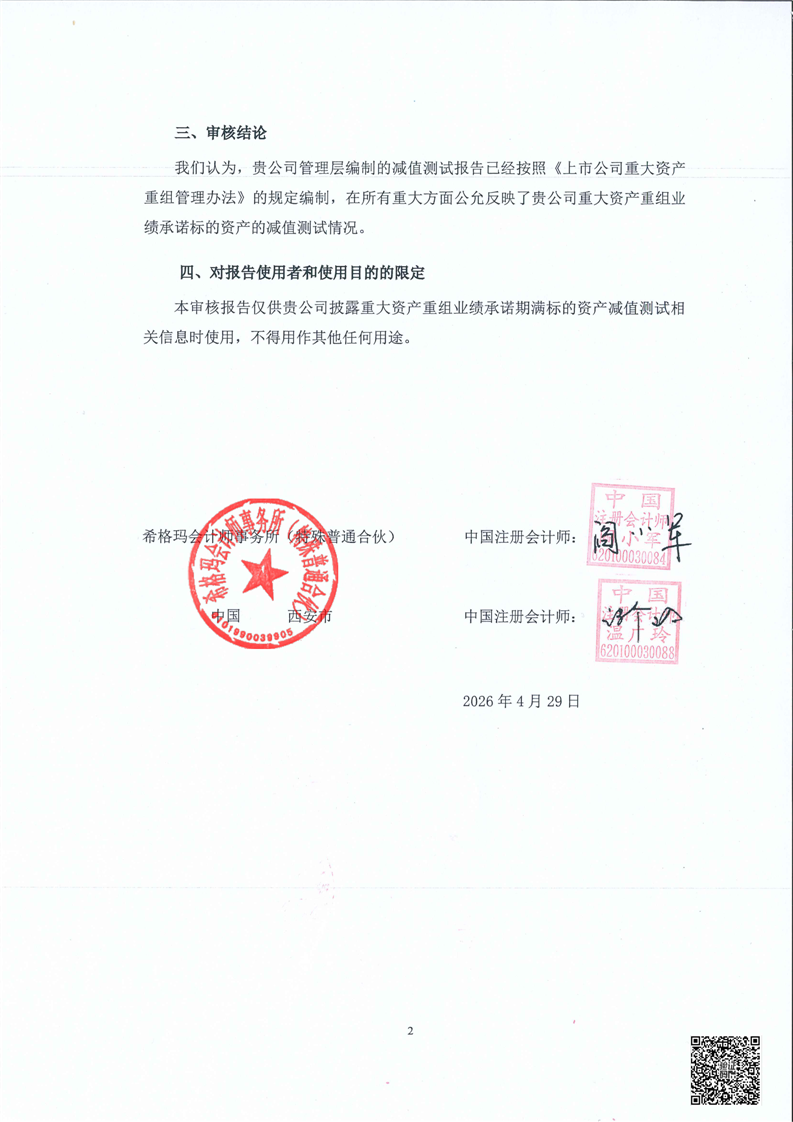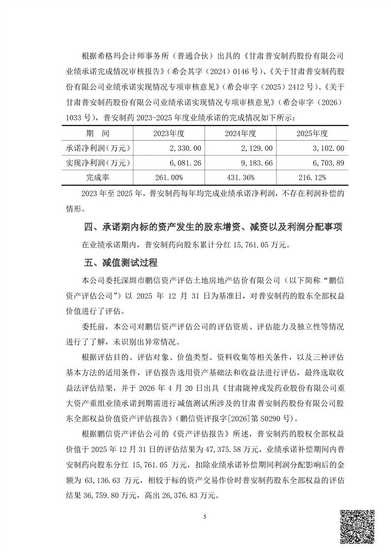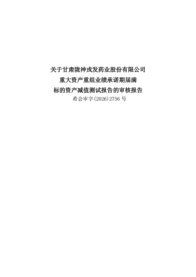 甘肃必一运动药业股份有限公司重大资产重组业绩承诺期届满标的资产减值测试报告的审核报告