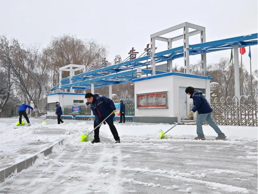 公司领导班子成员以身作则,拿起铁锹、扫帚,带领分管部门员工奔赴分担区域。各党支部书记、部门负责人冲锋在前,党员、团员青年踊跃参与,大家不畏严寒、分工协作,全力清理主干道、仓库通道、办公楼前、食堂周边及停车场等重点区域积雪。扫雪现场气氛热烈,叮叮当当的铲雪声与欢声笑语交织。有的用力铲除压实冰层,有的仔细清扫残余碎雪,有的负责转运积雪。老员工经验丰富,负责指导安全除冰;年轻员工体力充沛,主动承担重活。大家默契配合,在寒冷天气中干得满头大汗,厂区各主干道和关键连接通道迅速恢复畅通,为物流车辆通行和员工安全行走创造了条件。