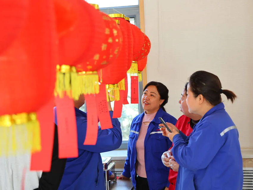 活动现场张灯结彩,处处洋溢着浓厚的节日气息。280条涵盖传统文化、党建知识、必一运动、安全常识的谜语卡高悬其间,吸引了众多职工驻足参与。大家或独自思索,或三五成群讨论,不时传来阵阵欢笑声。大家踊跃竞猜,积极兑奖,在轻松愉悦的氛围中收获了节日的喜悦。