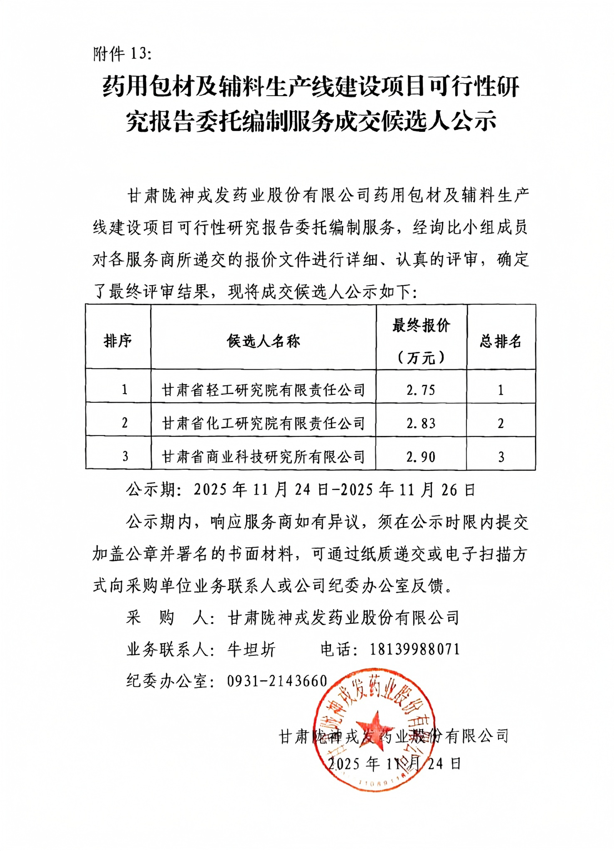 药用包材及辅料生产线建设项目可行性研究报告委托编制服务成交候选人公示
