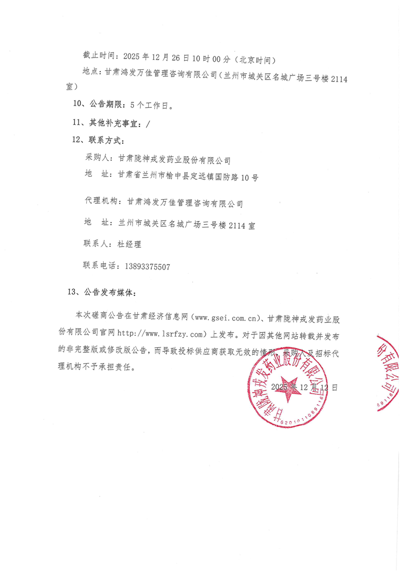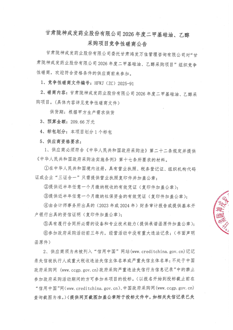 甘肃必一运动药业股份有限公司2026年度二甲基硅油、乙醇采购项目竞争性磋商公告