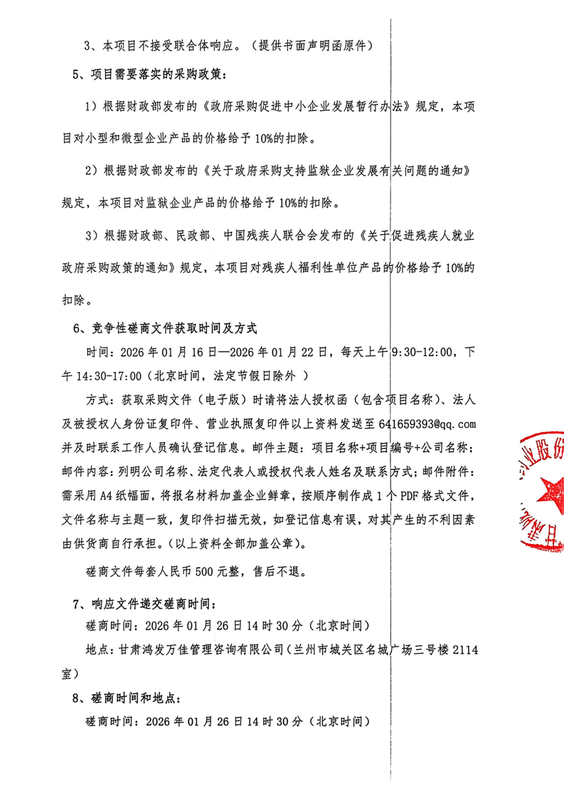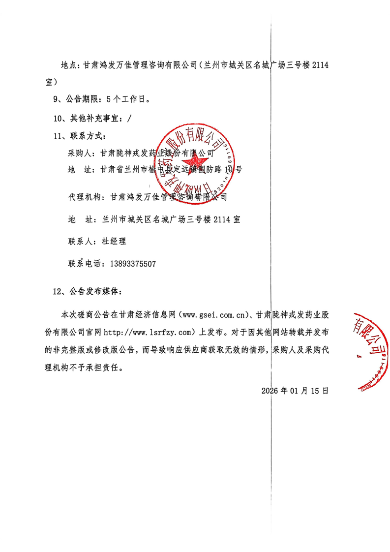 甘肃必一运动药业股份有限公司2026年度聚乙二醇6000采购项目(二次)竞争性磋商公告
