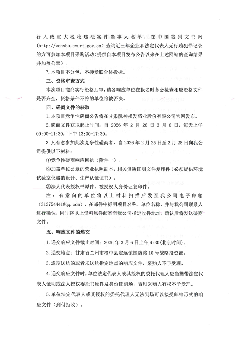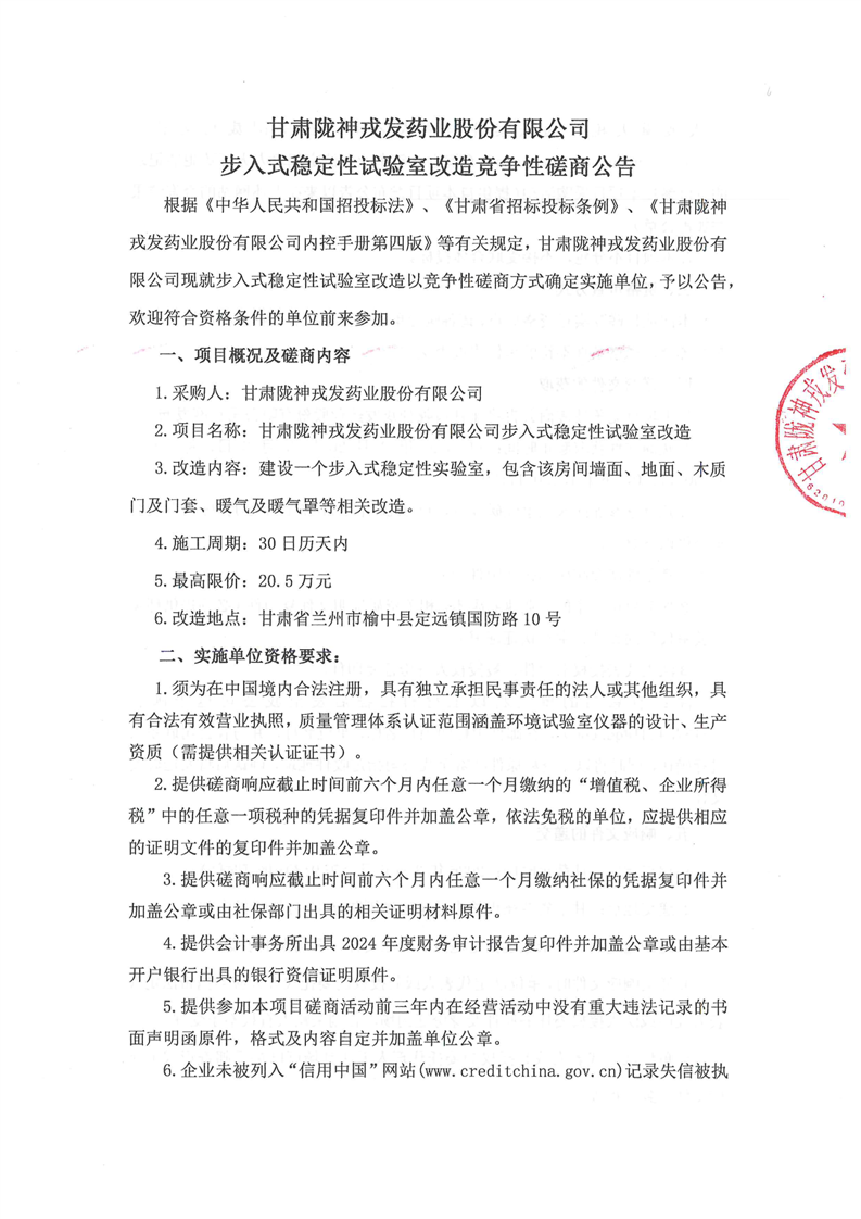 甘肃必一运动药业股份有限公司步入式稳定性试验室改造竞争性磋商公告