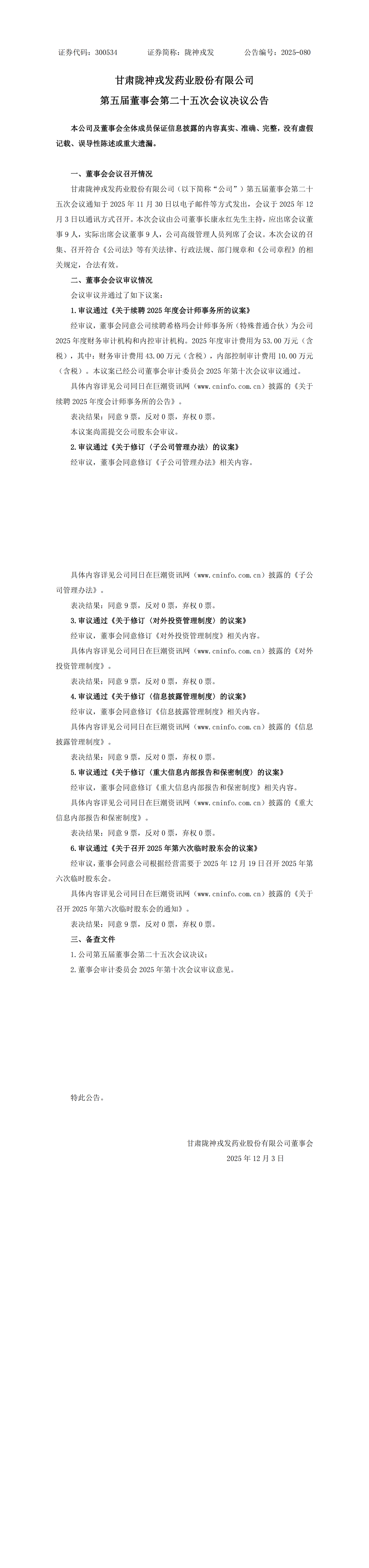 第五届董事会第二十五次会议决议公告