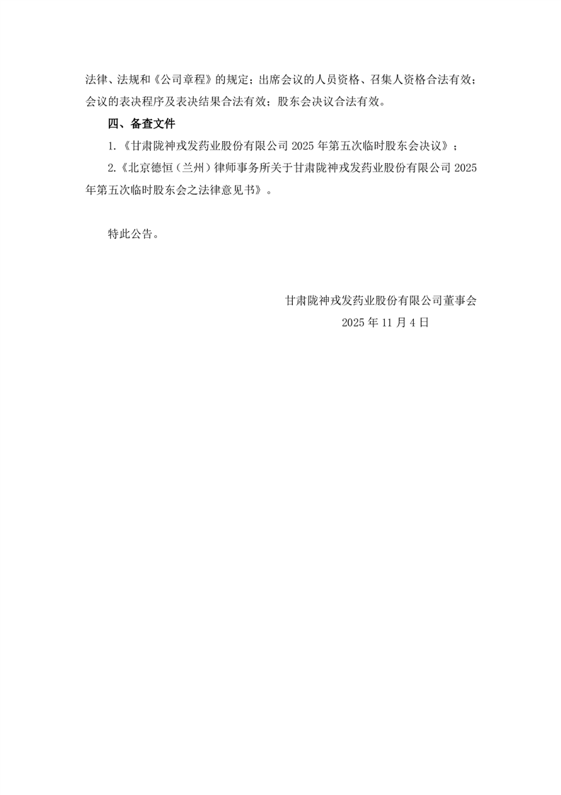 2025年第五次临时股东会决议公告