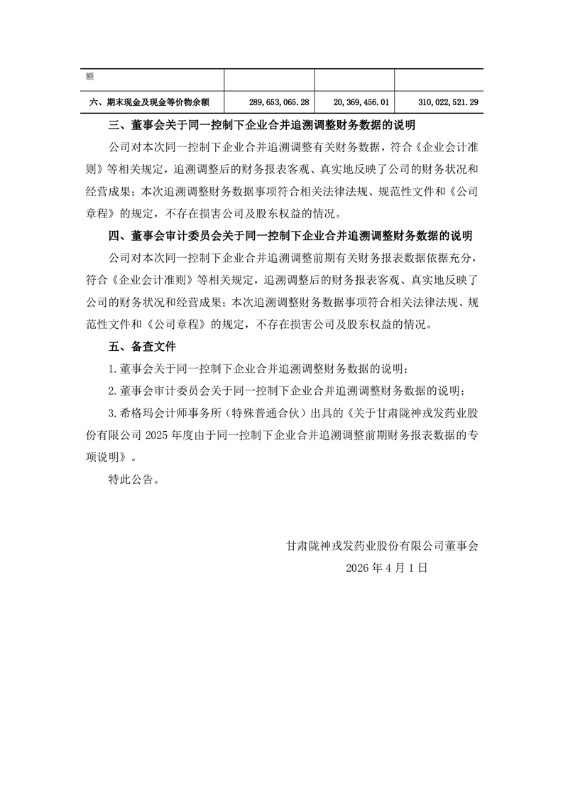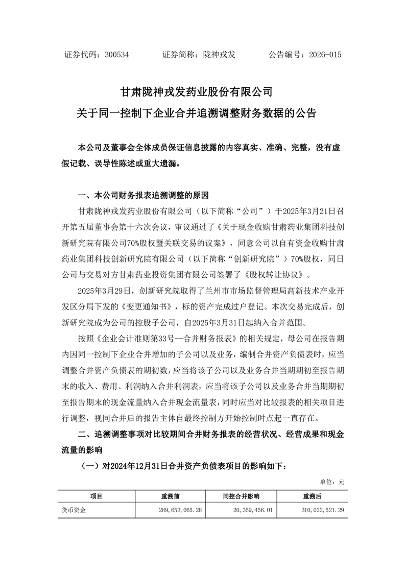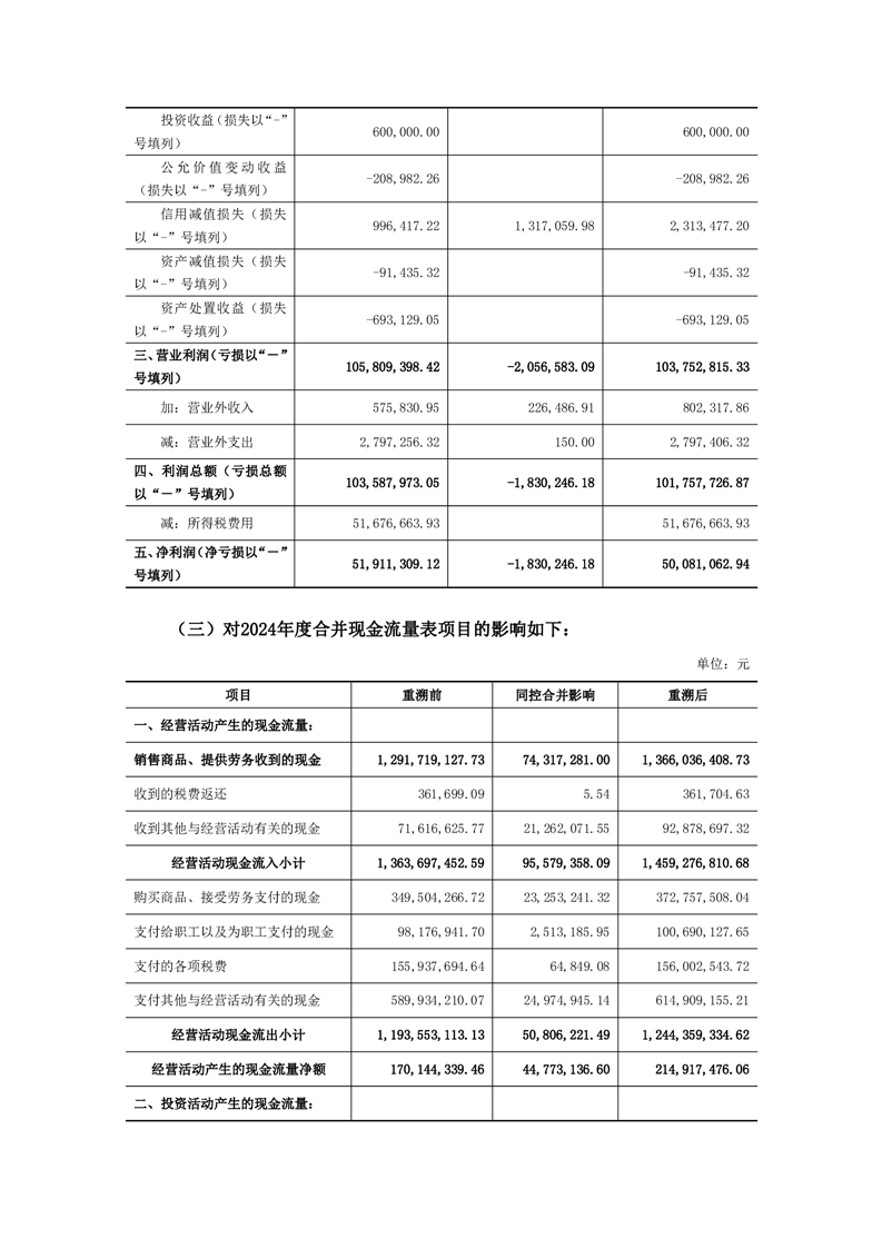 关于同一控制下企业合并追溯调整财务数据的公告