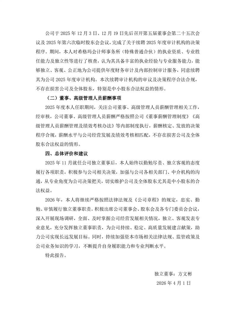2025年度独立董事述职报告(方文彬)
