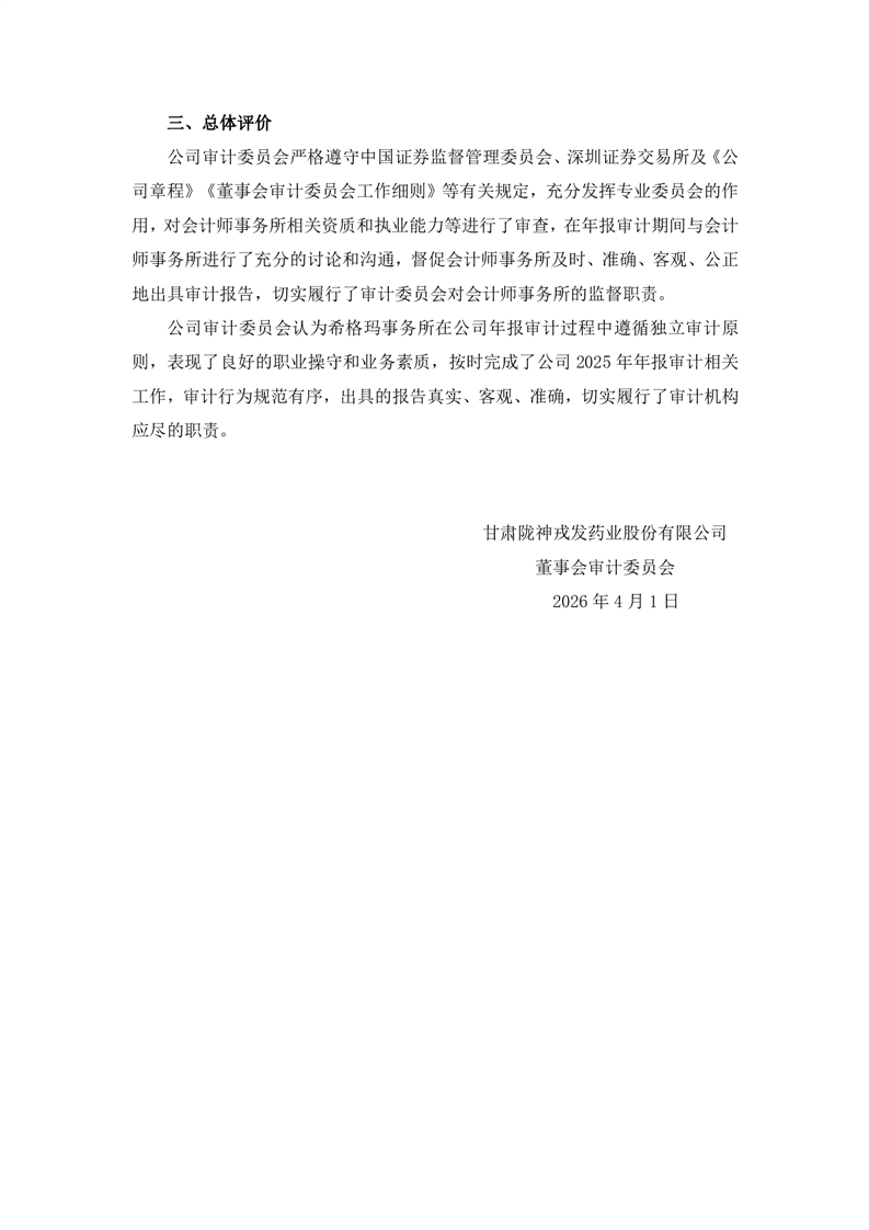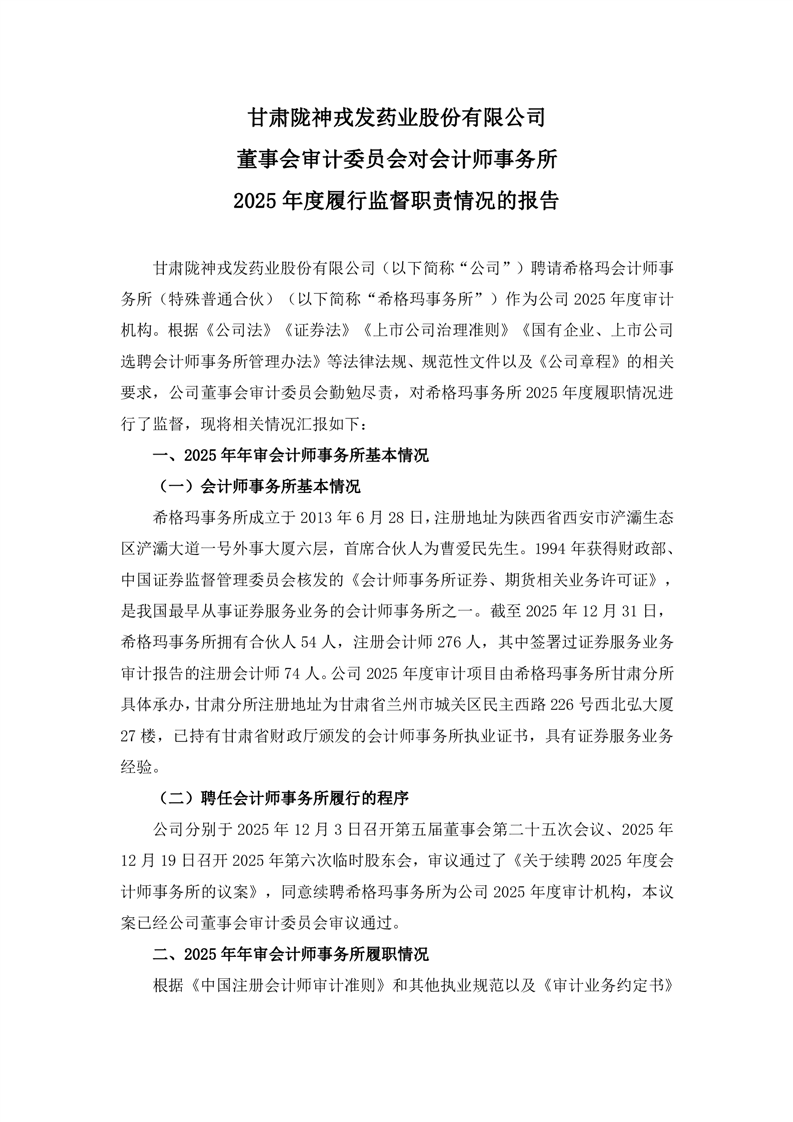 董事会审计委员会对会计师事务所2025年度履行监督职责情况的报告