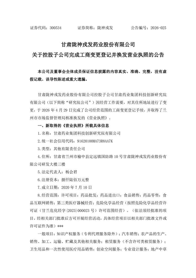 关于控股子公司完成工商变更登记并换发营业执照的公告