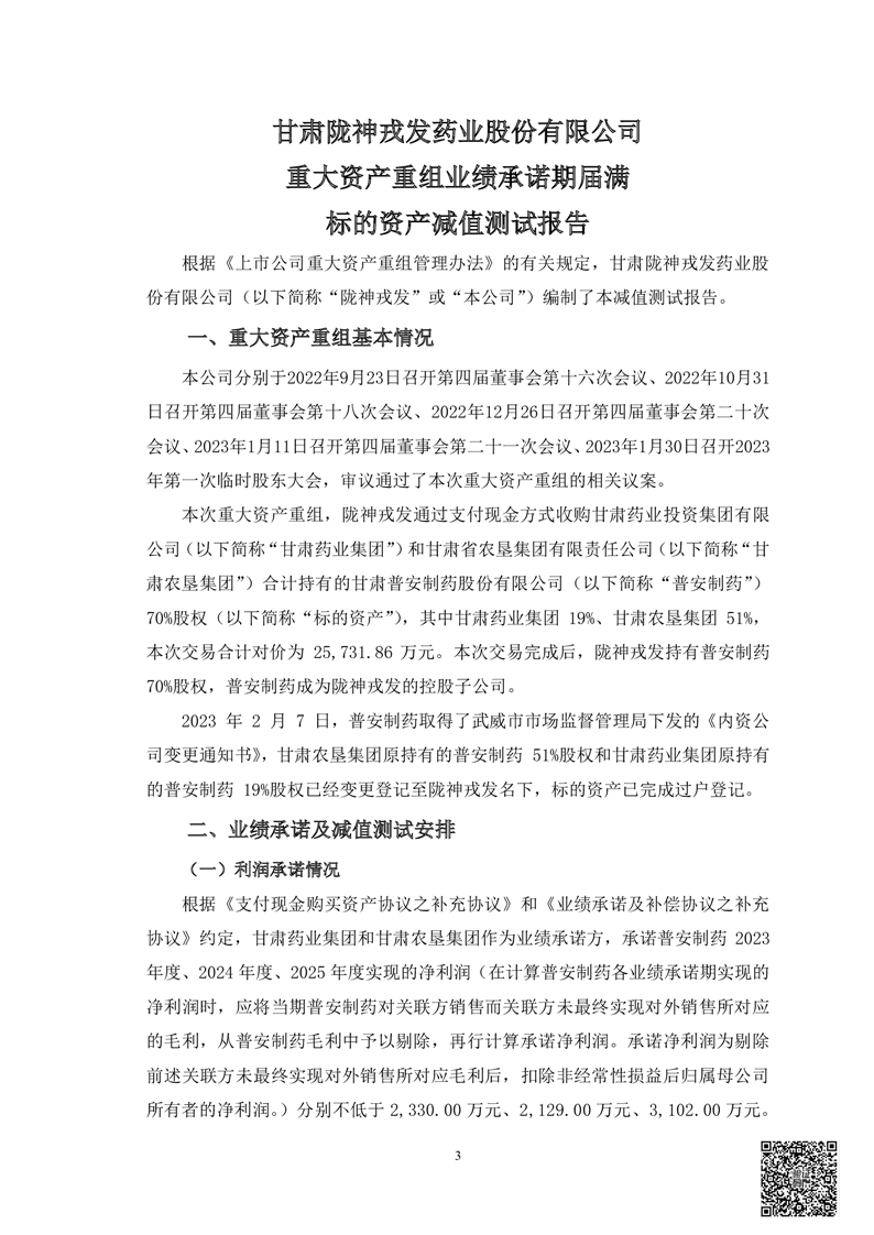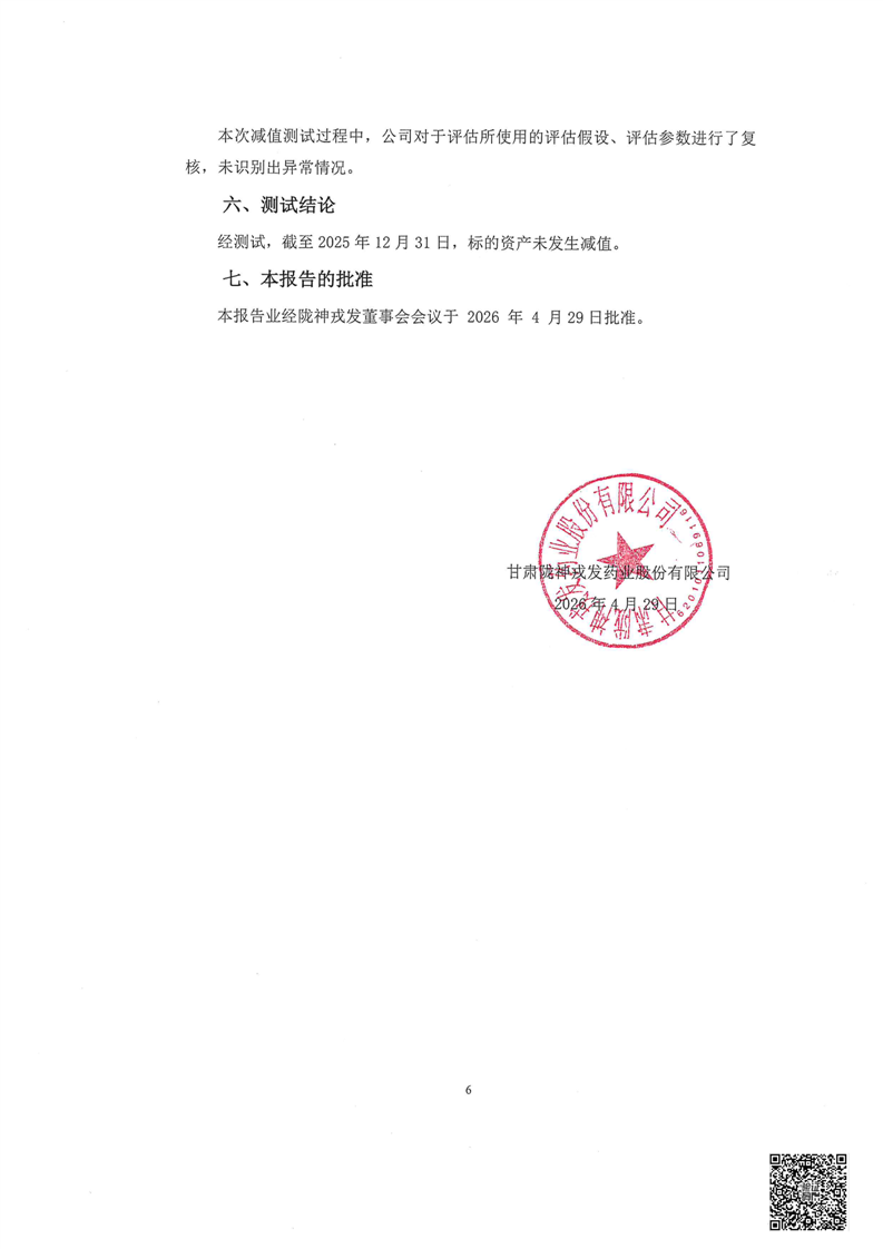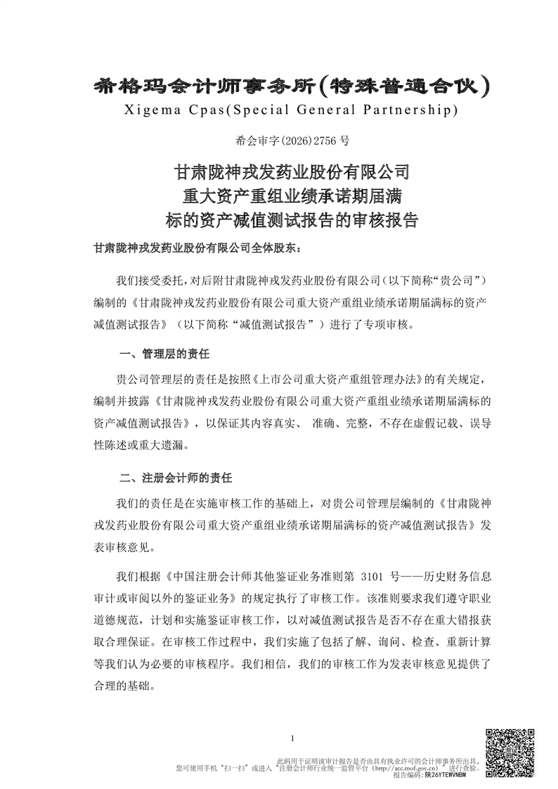甘肃必一运动药业股份有限公司重大资产重组业绩承诺期届满标的资产减值测试报告的审核报告