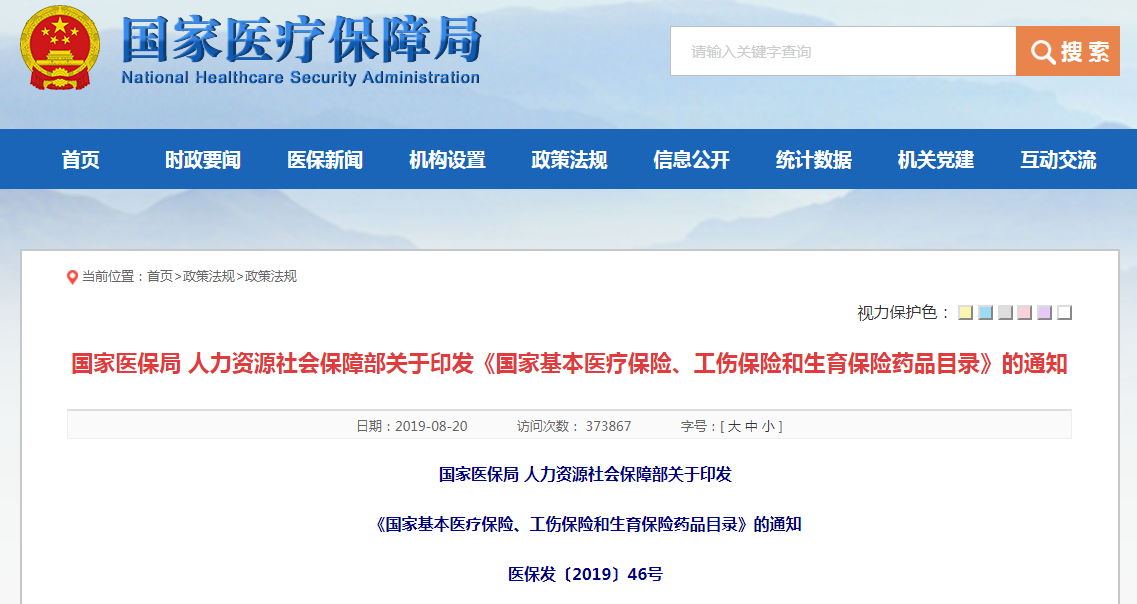 重磅!2019版国家医保目录,正式发布(附原文和目录)