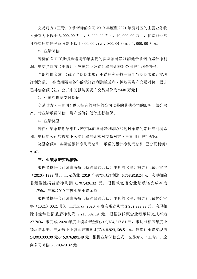 控股子公司2020年度业绩承诺完成情况的专项报告