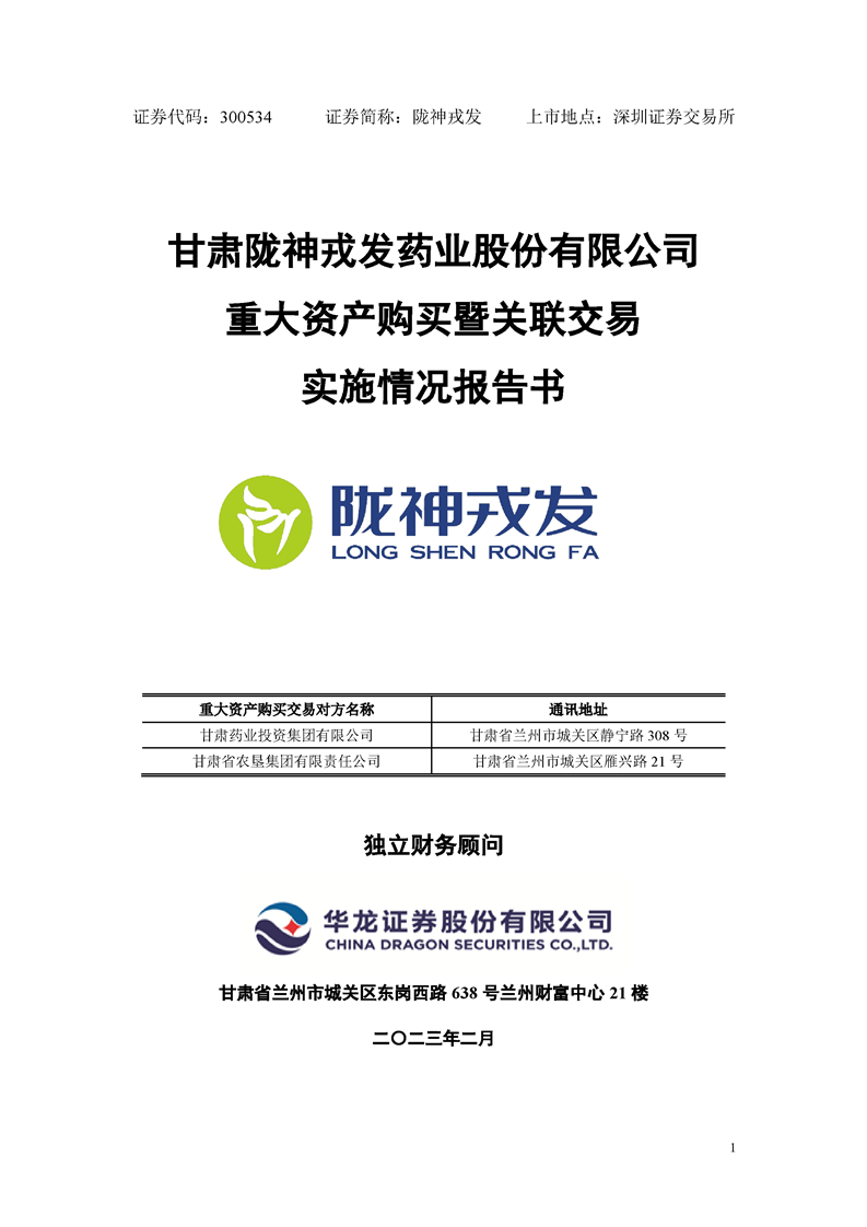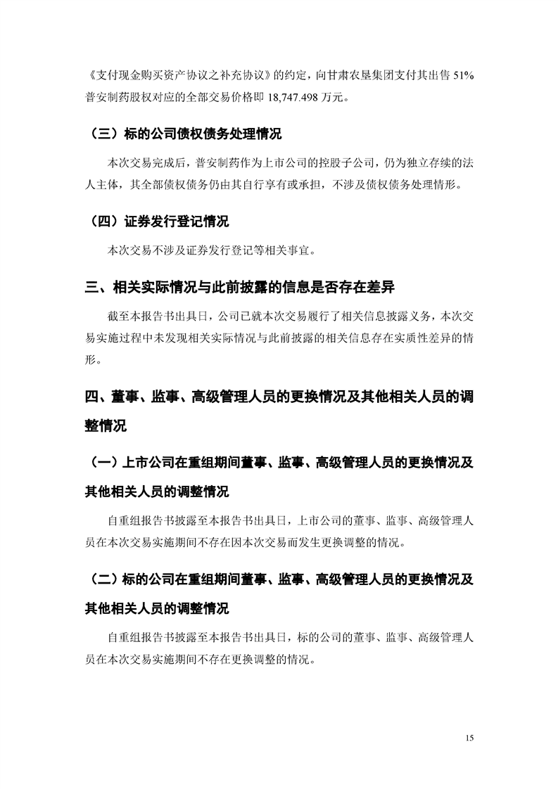 甘肃必一运动药业股份有限公司重大资产购买暨关联交易实施情况报告书